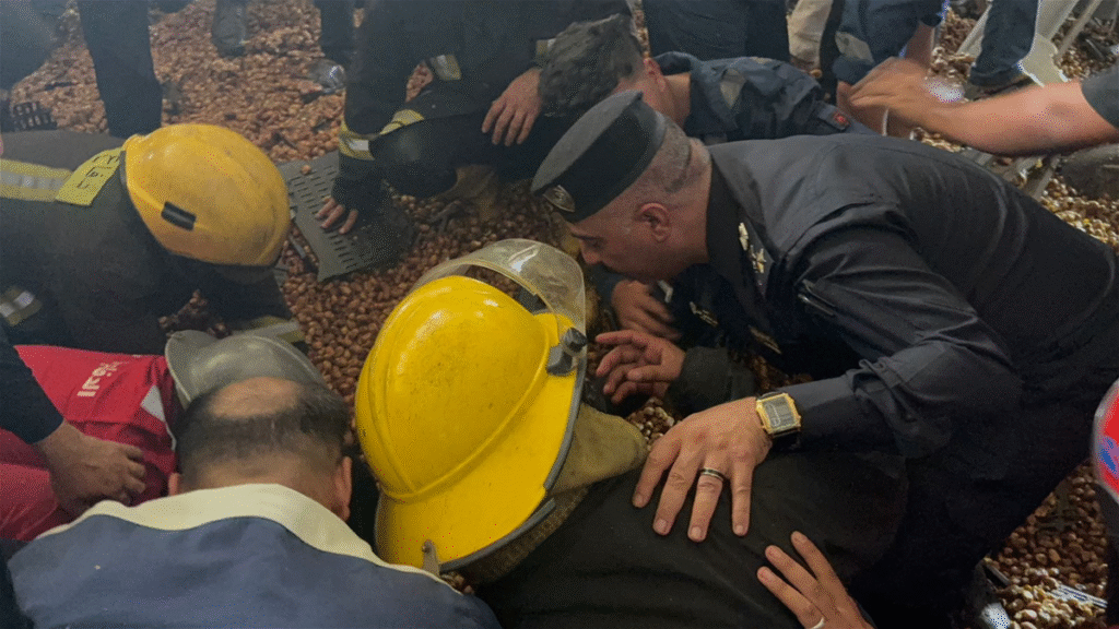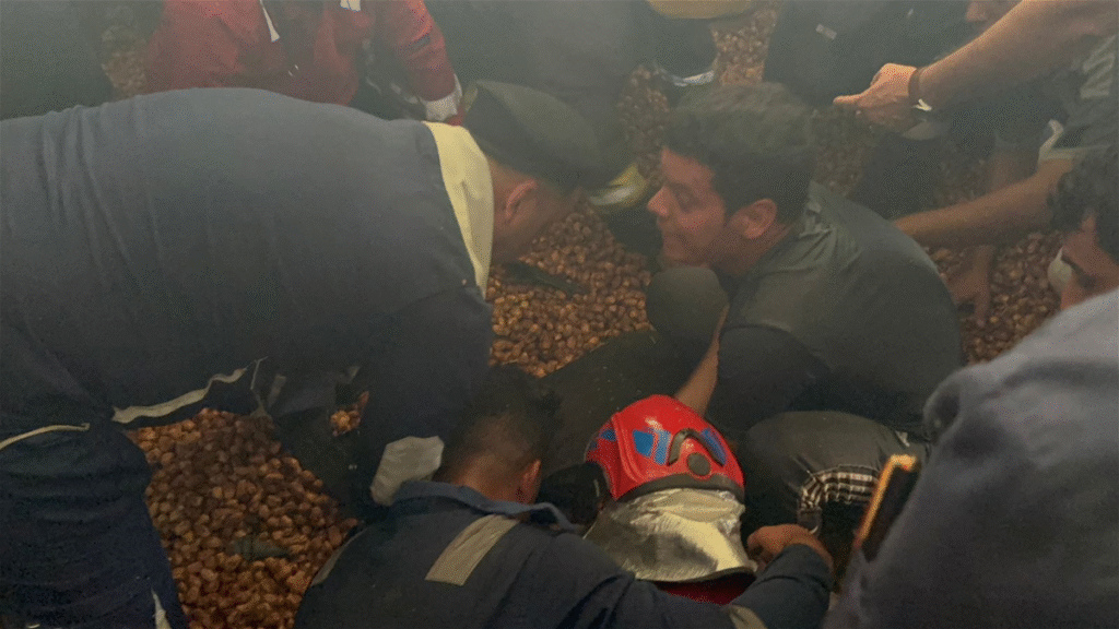 أنقذت فرق الدفاع المدني بمحافظة كربلاء العراقية اليوم الاثنين 4 عمال طمرتهم أطنان من التمور إثر انهيار سقف مخزن في منطقة الحسينية التابعة للمحافظة.