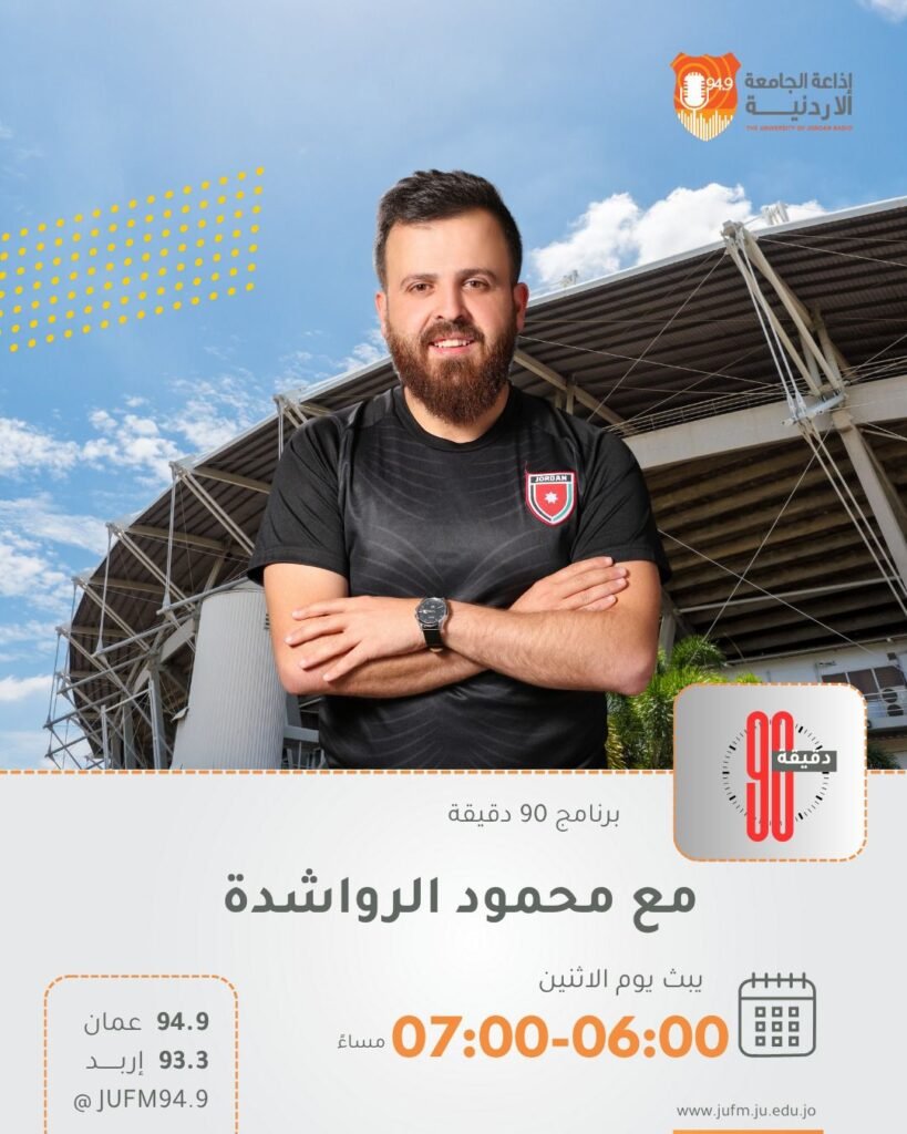 تنطلق يوم الاثنين أولى حلقات البرنامج الرياضي الجديد “تسعون دقيقة”، ضمن الدورة البرامجية الجديدة لإذاعة الجامعة الأردنية.