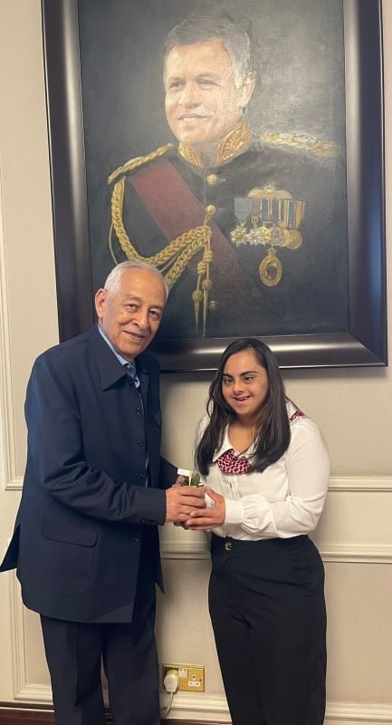 في لفتة إنسانية، استقبل رئيس الديوان الملكي الهاشمي، يوسف حسن العيسوي، الطالبة بشرى، التي تعاني من متلازمة داون، في مقر الديوان الملكي – بيت الأردنيين جميعًا، وذلك بعد موقف مؤثر وقع خلال زيارة معاليه إلى مركز نازك الحريري للتربية الخاصة.
