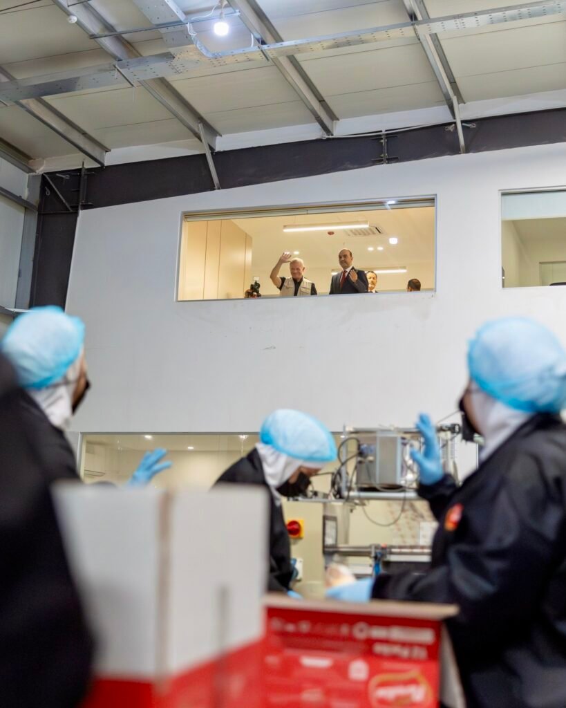 واختتم جلالة الملك زيارته في مجموعة شركات وليد الجيطان (مصنع مخابز برادايس)، واستمع إلى شرح من رئيس مجلس إدارة المجموعة ورئيسها التنفيذي محمد الجيطان حول عمليات المصنع وخططه المستقبلية لتوسيع الإنتاج.