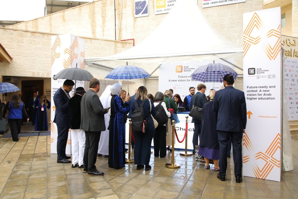 مع أمطار الخير الغزيرة وبرودة الطقس يوم أمس الثلاثاء ، سطعت شمس قمة التايمز للتعليم العالي للجامعات العربية 2025 في يومها الاول برحاب جامعة عمان الاهلية .