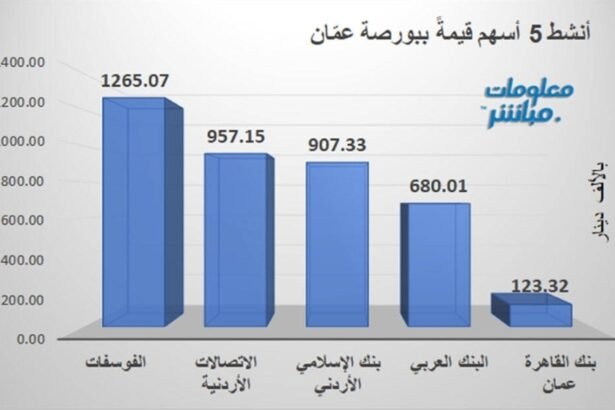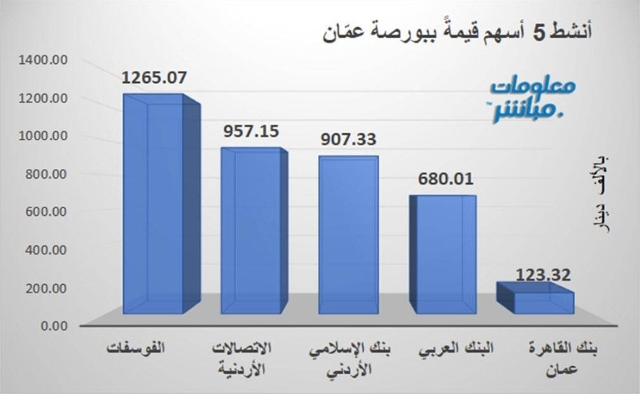 تصدر سهم الفوسفات قائمة الأسهم الأنشط من حيث قيمة التداول في بورصة عمّان اليوم، بعد أن سجل تداولات بقيمة 1.265 مليون دينار.