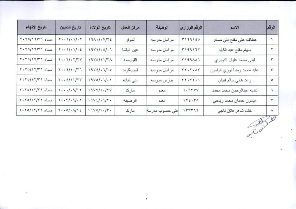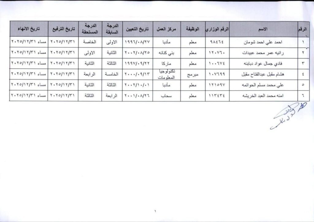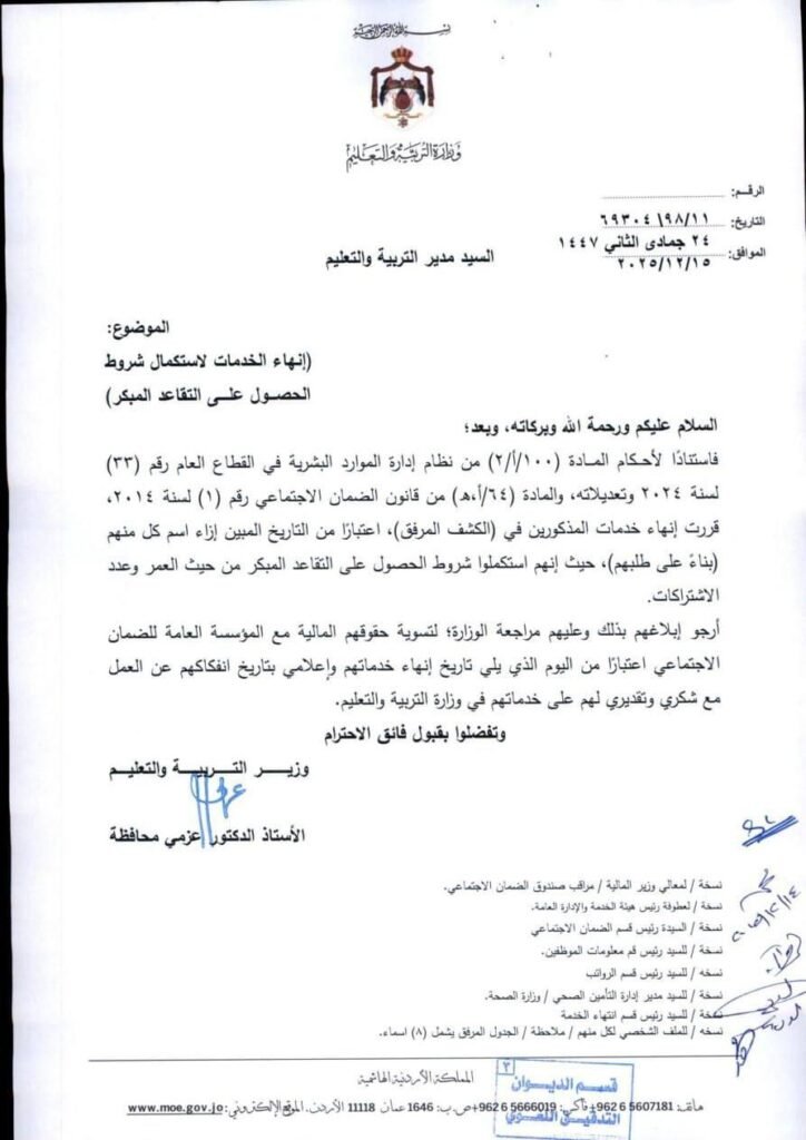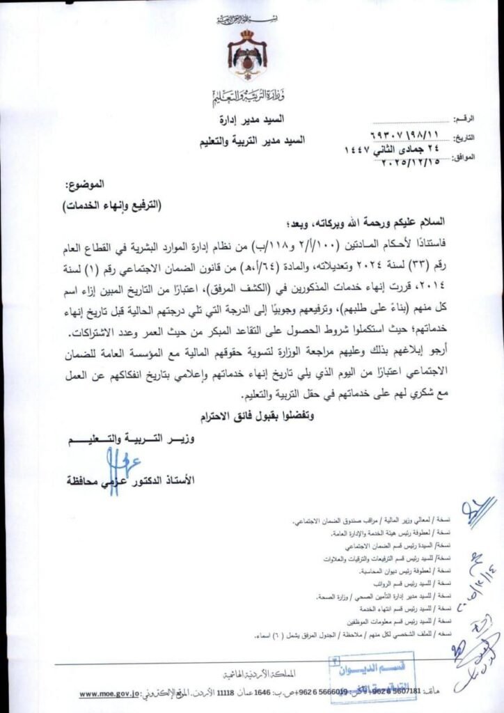 احالة وزارة التربية والتعليم عدد من الموظفين الى التقاعد والتقاعد المبكر بعد ترفيعهم وجوبيا