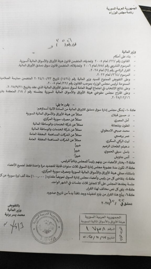 وفي تصريح خاص أكد السيد بيتنجانة نائب رئيس اللجنة أن الاستثمار في السوق السوري رخيص، و مناسب ويحتاج ثبات و مان ،بينما تشهد الاسواق العالمية ضعف صرف مع تخفيض، الفائدة للعملة $مع ارتفاع خيالي لسعر الذهب في ظل تغيرات عالمية ،بسبب الجمارك الأمريكية الجديدة إضافة إلى توقف الصين عن الشراء و (نزول سعر) المواد الأولية بالتحديد النفط، ووضع ضريبة الكربون على دخول الأسواق الأوربية .. مشيرا أنه من الفخر والاعتزاز لخدمة بلدي سورية في مثل هذه الظروف الصعبة وضمن هذه المرحلة الانتقالية مما يعطي ثقة أكبر لخدمة الأسواق الداخلية ونعمل بشفافية وثقة مع الهيئة الناظمة والقطاع الخاص ودعم الاقتصاد الوطني ودفع عملية التنمية الاقتصادية والاجتماعية والمساهمة في عملية البناء وإعادة الإعمار والتطوير والتعاون مع المستثمرين ورجال الأعمال من الخارج والداخل لتقديم كل ماهو مفيد لمستقبل الاقتصاد الوطني. مؤكدا في ختام تصريحه أن الانتخابات جرت في أجواء ديمقراطية مميزة من خلال انتخابي اولا من السوق ومن ثم من لجنة الأسواق المالية كنائب لرئيس اللجنة ونسعى من خلال اللجنة لتطوير عمل هيىة الأسواق المالية وإعادة حضورها وتواجدها لدعم الاقتصاد الوطني ودفع عملية البناء وإعادة الإعمار والتنمية الاقتصادية….