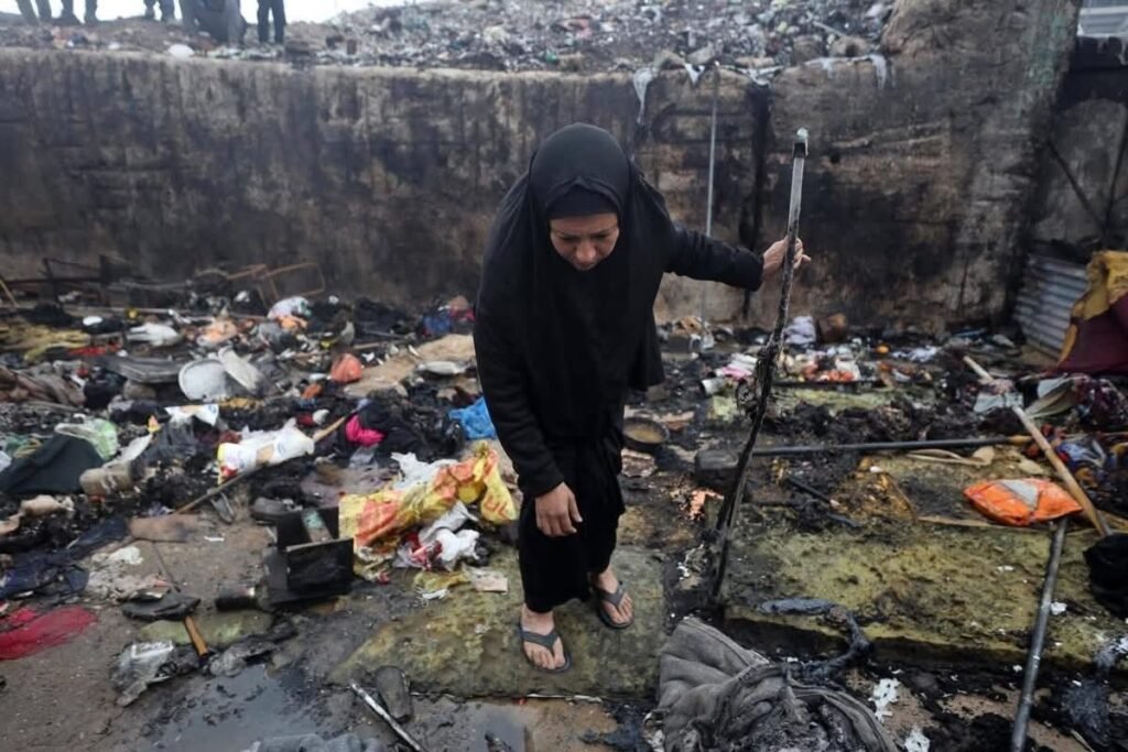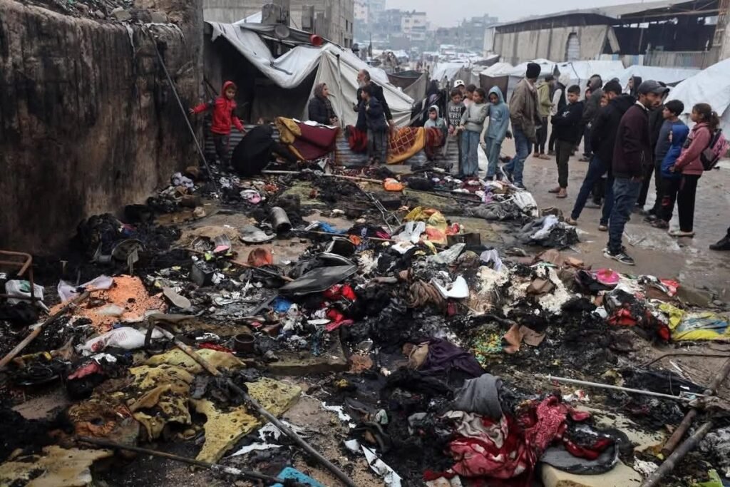 مأساة الشتاء في غزة.. ارتقاء امرأة وطفل وإصابة طفل آخر من عائلة أبو الخير، إثر حريق اندلع داخل خيمتهم بعدما حاولت الأم إشعال شمعة لتدفئة أطفالها وسط البرد القارس.