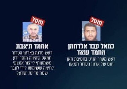 أعلن المتحدث باسم الجيش الإسرائيلي اليوم (الجمعة) أن قوات الأمن اغتالت أمس قائد وحدة الدروع والدبابات في كتائب القسام التابعة لحماس، كمال عبد الرحمن محمد عوض، ورئيس ورشة إنتاج الأسلحة التابعة للحركة، أحمد ثابت، ردًا على محاولة إطلاق صاروخ نُفذت من منطقة مدينة غزة على حد زعم البيان.