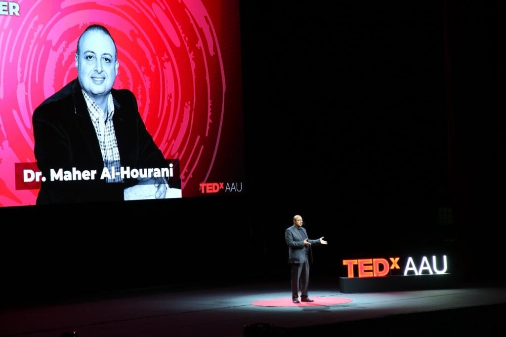افتتح الدكتور ماهر الحوراني نائب رئيس مجلس الامناء لجامعة عمان الاهلية و رئيس هيئة المديرين فيها منصة TEDxAAU يوم امس 10-1-2026 في مسرح الارينا بالجامعة بحضور رئيس الجامعة الاستاذ الدكتور ساري حمدان وعمدائها وجمع كبير من أعضاء الهيئة التدريسية، والمؤثرين، والطلبة، والمفكرين.