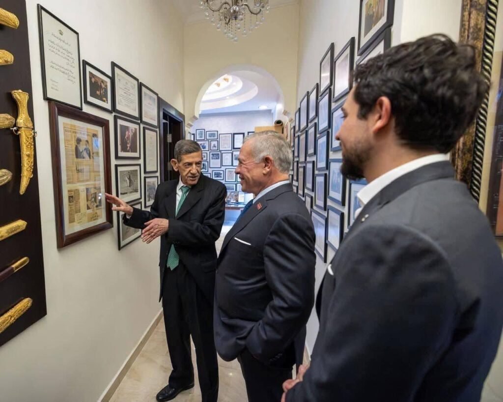 زار جلالة الملك عبدالله الثاني بن الحسين، يرافقه سمو الأمير الحسين بن عبدالله الثاني، ولي العهد، الأسبوع الماضي، رئيس الديوان الملكي الأسبق يوسف الدلابيح في دارته.