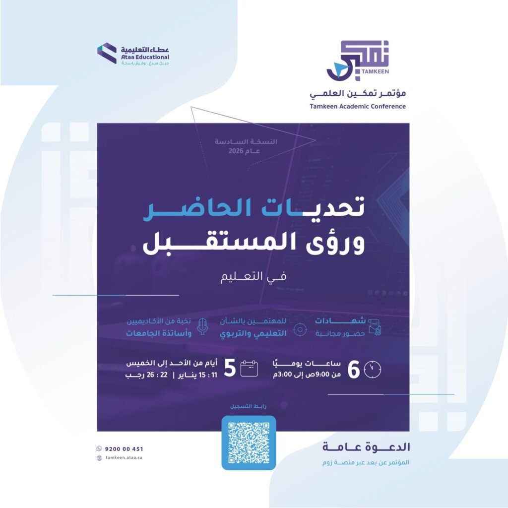 ويُشار إلى أن مؤتمر “تمكين العلمي” يُعد من الفعاليات التربوية المتخصصة على المستوى الإقليمي، وناقش هذا العام عددًا من القضايا المرتبطة بمستقبل التعليم، والتحول الرقمي، وبناء القدرات البشرية، بمشاركة نخبة من الخبراء والمختصين.
