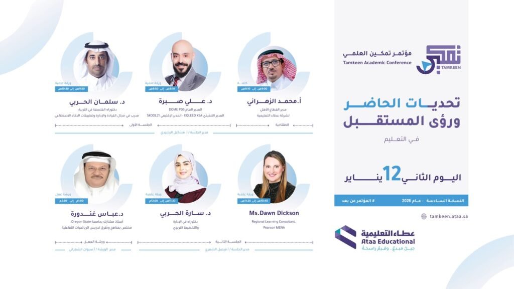 شارك مدير عام مجموعة دوم التعليمية للنشر والتوزيع والاستشارات الأكاديمية الدكتور علي صبرة متحدثًا رئيسيًا في مؤتمر “تمكين العلمي 2026”، الذي نظمته شركة عطاء التعليمية في المملكة العربية السعودية، حيث قدّم ورقة علمية بعنوان: “مثلث صناعة المستقبل في عصر الذكاء الاصطناعي”، تناول فيها أبرز التحولات التي يشهدها قطاع التعليم في ظل التطور المتسارع للتقنيات الحديثة.