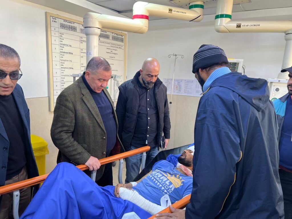 زار رئيس لجنة بلدية جرش ، الباشا محمد بني ياسين عامل الوطن صبري العايدي و الذي تعرض اليوم لحادث دهس اثناء القيام بعمله اليوم في باب عمان والذي يرقد على سرير الشفاء في مستشفى جرش الحكومي والاطمئنان على سلامته، بحضور المدير الاداري عدنان السعد ومدير مستشفى جرش الدكتور صادق العتوم ..