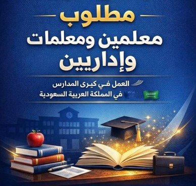 تعلن شركة العروبة للتوظيف عن فتح باب المقابلات للتعاقد مع كادر تعليمي متميز للعمل في فروع المدارس التابعة لها بالمملكة العربية السعودية، وذلك للتخصصات التالية: