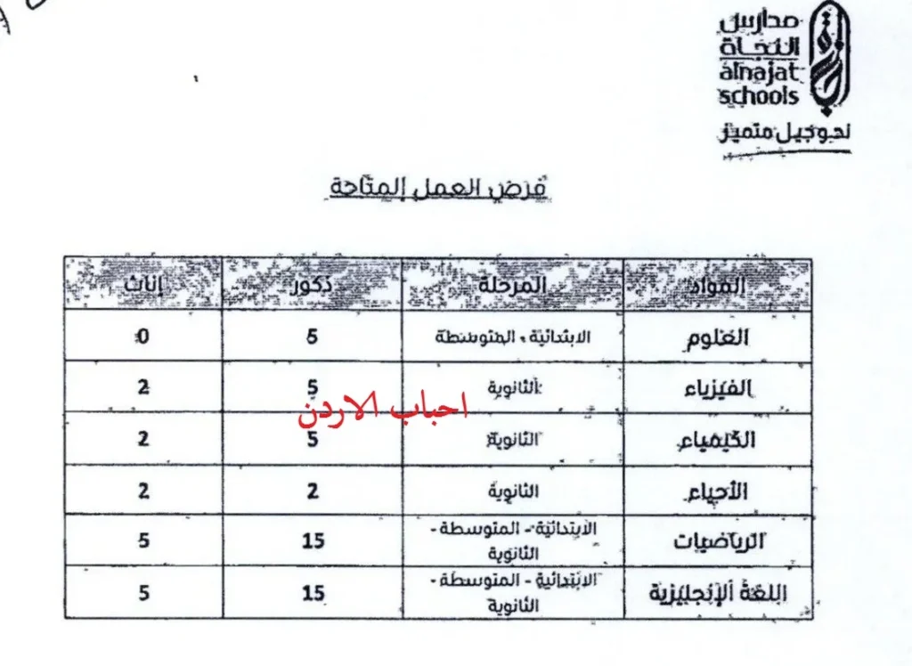 أعلنت وزارة التربية والتعليم عن توفر فرص عمل للمعلمين في دولة الكويت في التخصصات التالية :