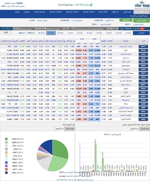 قاد سهم شركة مناجم الفوسفات الأردنية نشاط التداول في بورصة عمان اليوم الأحد، مسجّلًا حجم تداول 132,000 سهم بقيمة إجمالية بلغت 3,205,696 دينار، بما يشكّل 29.15% من حجم التداول الكلي للسوق.