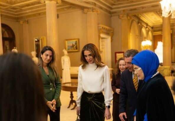وبعد الاستقبال الرسمي، قامت جلالتها والسيدة الأولى بجولة في معرض فني تراثي يقام حاليًا في القصر، يضم مجموعة من المنسوجات والتطريزات التركية التقليدية، ويبرز الدور المحوري للفنون التقليدية في تشكيل الهوية الثقافية التركية.