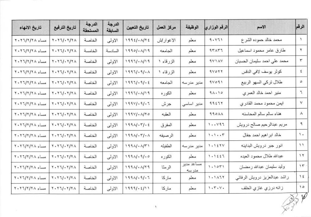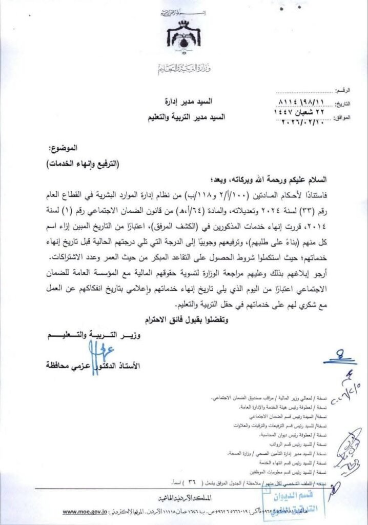تعليم وجامعاترئيسي دفعة جديدة من الترفيعات والتقاعدات في وزارة التربية والتعليم Last updated: فبراير 10, 2026 6:00 م dawoud Share 0 Min Read SHARE وكالة تليسكوب الإخبارية You Might Also Like بشرى سارة للعاملين في القطاع العام .. التفاصيل الغذاء والدواء تغلق مخبزًا في أحد المولات لوجود حشرات الغذاء والدواء تغلق مشغل حلويات مخالف كتلة حزب مبادرة النيابية تزور “البوتاس العربية” وتشيد بأداء الشركة “صناعة عمان” تنفذ ورشة توعوية متخصصة حول التصدير Sign Up For Daily NewsletterBe keep up! Get the latest breaking news delivered straight to your inbox.[mc4wp_form]By signing up, you agree to our Terms of Use and acknowledge the data practices in our Privacy Policy. You may unsubscribe at any time. Share This Article Facebook Twitter Whatsapp Whatsapp Telegram Email Copy Link Print Share Previous Article كتلة حزب مبادرة النيابية تزور “البوتاس العربية” وتشيد بأداء الشركة Next Article الأحزاب الأردنية بين إعادة الهيكلة ومتطلبات المرحلة السياسية الجديدة التحول الى العمل البرامجي شرط استعادة الثقة في الشارع