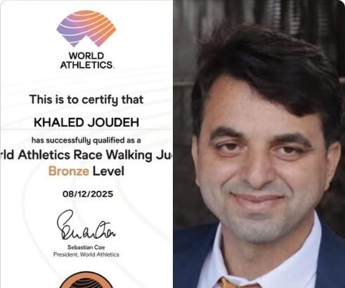 وحصوله على شهادة حكم سباق المشي – المستوى البرونزي