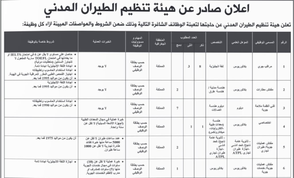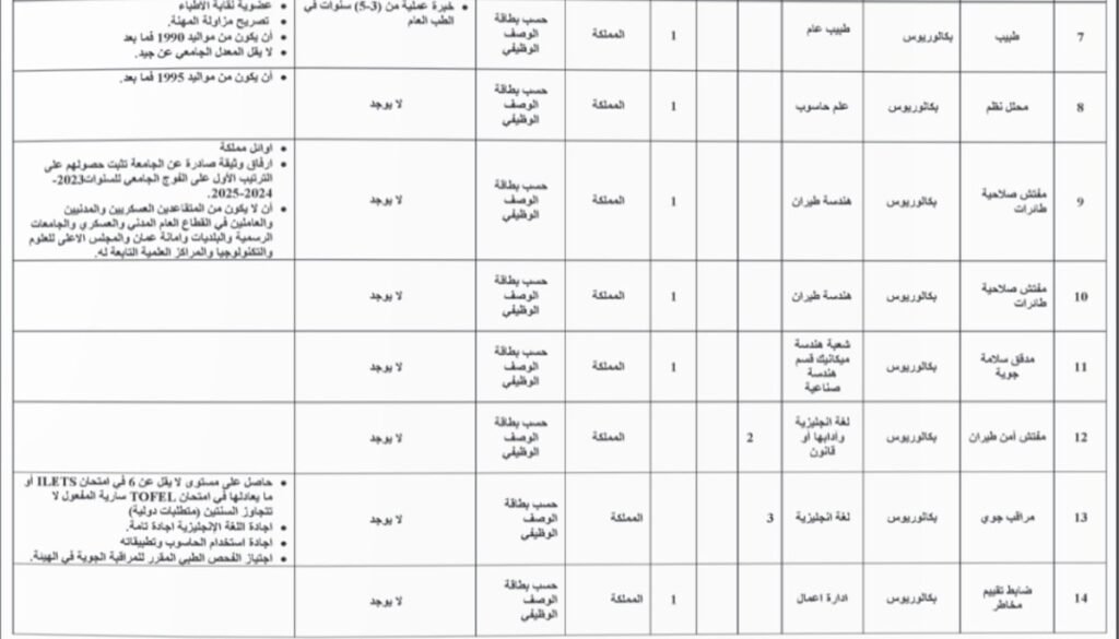 اعلنت دوائر حكومية عن حاجتها لتعبئة وظائف شاغرة وذلك ضمن الشروط والمواصفات المبية ازاء كل وظيفة مرفقة بالجدول.