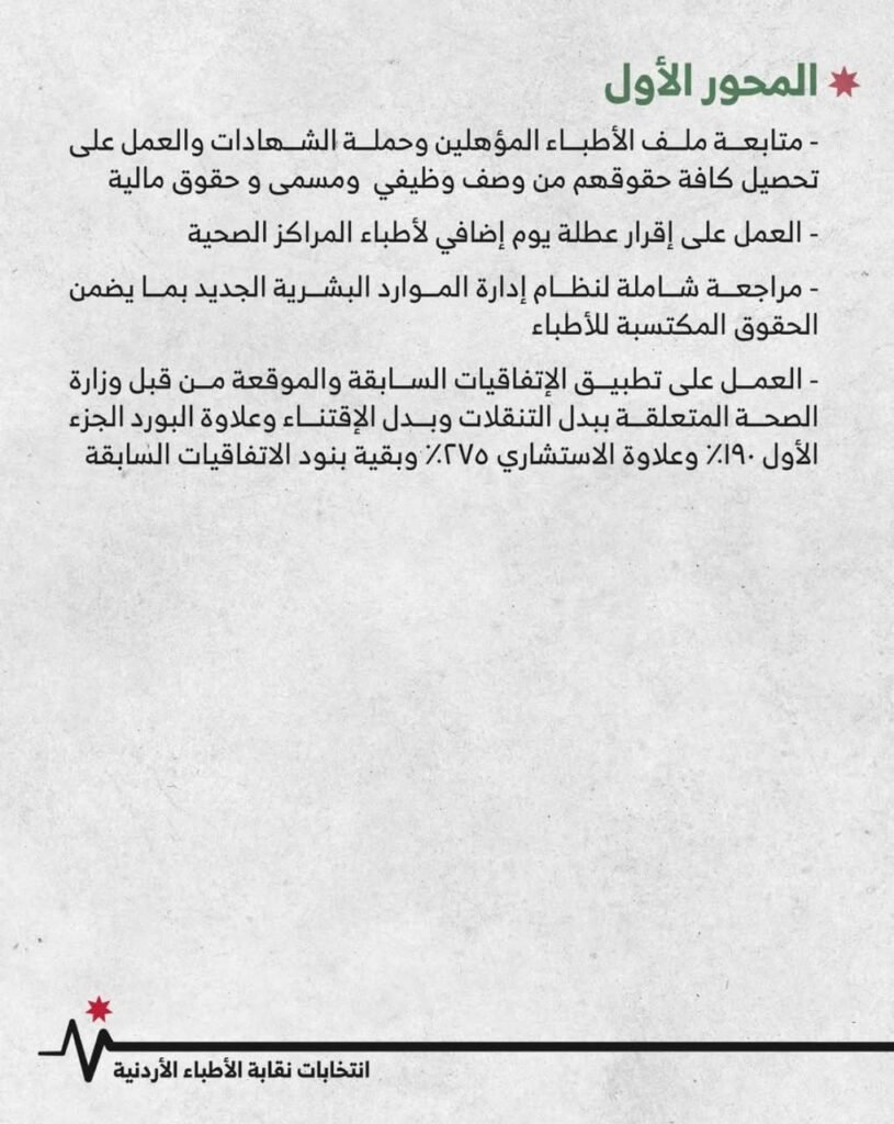 يقترب مجلس نقابة الأطباء من إتمام عامه الأول منذ انتخابه، بعد أن رفع خلال حملته الانتخابية وعوداً واضحة بحلّ ملفي الأطباء حملة البورد الأجنبي ومؤهلي الاختصاص. ووردت تلك التعهدات ضمن البرنامج الانتخابي وخارطة الطريق التي أُعلنت آنذاك، بوصفها أولوية مهنية وقانونية لا تحتمل التأجيل.
