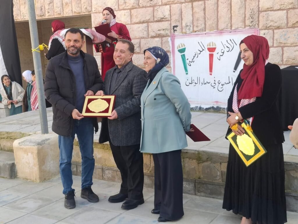 بدوره، قال د. قدادة: “يشرفني ويسعدني أن أكون بينكم اليوم في هذه المناسبة الوطنية العزيزة، التي تجمع بين الاحتفال بعيد ميلاد قائد الوطن، جلالة الملك عبدالله الثاني ابن الحسين المعظم – حفظه الله ورعاه – الرابع والستين، وبين تكريم القامة التربوية القائدة المميزة الأستاذة انشراح حمدان مديرة مدرسة الجزائر الأساسية، بمناسبة تقاعدها بعد مسيرة عطاء امتدت لأربعة وثلاثين عامًا.