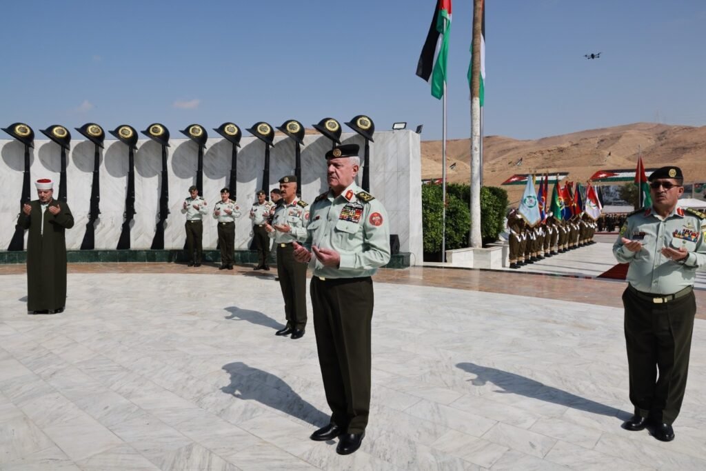 ولدى وصول رئيس هيئة الأركان المشتركة موقع الاحتفال، كان في استقباله عدد من كبار ضباط القوات المسلحة، واستعرض اللواء الركن الحنيطي حرس الشرف الذي اصطف لتحيته.