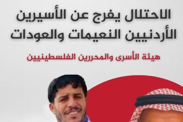 أعلنت وزارة الخارجية وشؤون المغتربين، اليوم، إعادة المواطنين الأردنيين مصلح العودات، وحسين النعيمات إلى المملكة بعد احتجازهما عقب حادثة إطلاق النار التي وقعت في الجانب الفلسطيني من جسر الملك حسين الذي تسيطر عليه إسرائيل في الثامن من شهر أيلول الجاري.