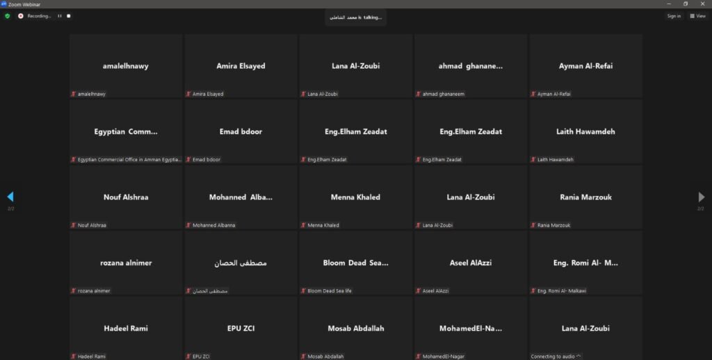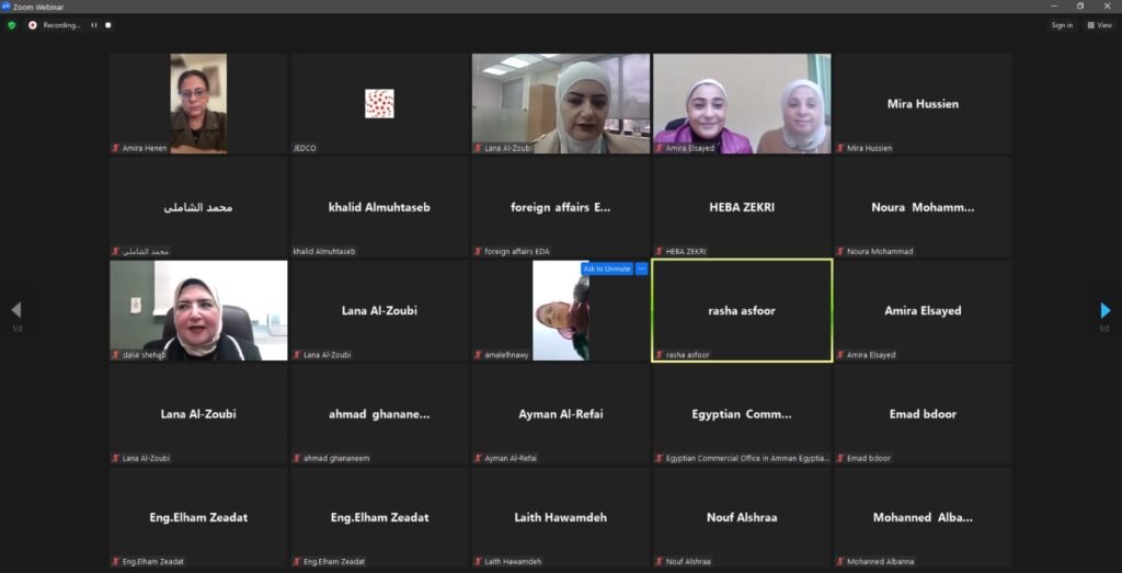 نظّمت المؤسسة الأردنية لتطوير المشاريع الاقتصادية وبالتعاون مع جهاز تنمية المشروعات في جمهورية مصر العربية، ورشة عمل افتراضية متخصصة بعنوان “دعم نفاذ المشاريع الصغيرة والمتوسطة إلى السوق الأردني والمصري ” والموجّهة للمشاريع العاملة في قطاع الصناعات الكيميائية ومنتجات البحر الميت وذلك بمشاركة عدد من ممثلي القطاعين العام والخاص من الجانبين.
