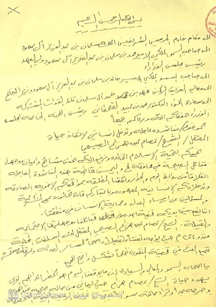 إلى مقام خادم الحرمين الشريفين الملك سلمان بن عبدالعزيز آل سعود