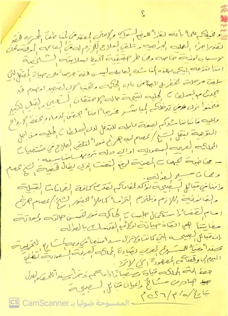 إننا نتوجه إليكم بهذه المناشدة العاجلة، ليس فقط حرصاً على حياة المعتقل التي بلغت مرحلة الخطر، بل أيضاً من باب الحكمة وتجنباً لأي تصعيد أو صدام قد يحدث مع السلطات المحلية نتيجة حالة الاحتقان الشعبي والقبلي الكبيرة، فنحن نرى في تدخلكم المباشر مخرجاً آمناً يحقن الدماء ويحفظ الأرواح.
