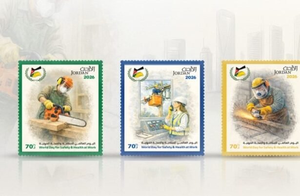 طرحت شركة البريد الأردني إصدارا جديدا من الطوابع التذكارية بعنوان “اليوم العالمي للسلامة والصحة المهنية”.