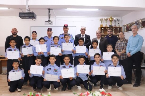 شهدت مدرسة عين جنا الثانوية للبنين عُرساً وطنياً بامتياز، تكلل بتخريج فوج جديد من طلبة دورة “الشرطي الصغير”، وذلك برعاية مدير شرطة محافظة عجلون العميد محمود النعيمات، وبحضور مدير التربية والتعليم الأستاذ خلدون جويعد، في خطوة تجسد أبهى صور الشراكة بين المؤسستين الأمنية والتربوية ، وخلال الحفل، أكد العميد النعيمات أن مديرية الأمن العام تضع في سُلم أولوياتها تمكين الجيل الناشئ وتعزيز مفاهيم المواطنة الصالحة لديهم، مشيراً إلى أن هذه الدورات تمثل ركيزة أساسية في بناء وعي أمني ومجتمعي يحصن الطلبة فكرياً وسلوكياً، ويجعل منهم شركاء حقيقيين في الحفاظ على أمن الوطن واستقراره ، وتخلل الاحتفال استعراض عسكري لافت قدمه الطلبة الخريجون، عكس مستوى الانضباط والتدريب العالي الذي تلقوه، قبل أن يتم توزيع الشهادات التقديرية عليهم وسط أجواء من الفخر والاعتزاز. من جانبها، أعربت الأسرة التربوية عن تقديرها العميق للدور الريادي الذي تضطلع به مديرية الأمن العام في نشر الوعي الوقائي، مؤكدين أن مثل هذه المبادرات تسهم بشكل مباشر في صياغة شخصية الطالب القيادية والمسؤولة.