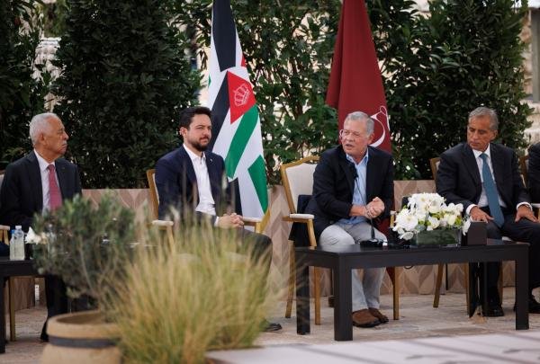 وأعرب جلالته لدى لقائه وجهاء وممثلين عن أبناء محافظة عجلون، بحضور سمو الأمير الحسين بن عبدالله الثاني ولي العهد، عن اعتزازه بوجوده في عجلون العزيزة، ولقائه بأهلها في قلعتها التاريخية.