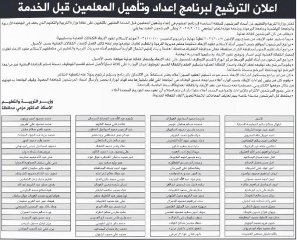 دعت وزارة التربية والتعليم ،اليوم الثلاثاء، عددا من مرشحين لاجراء الامتحان التنافسي.