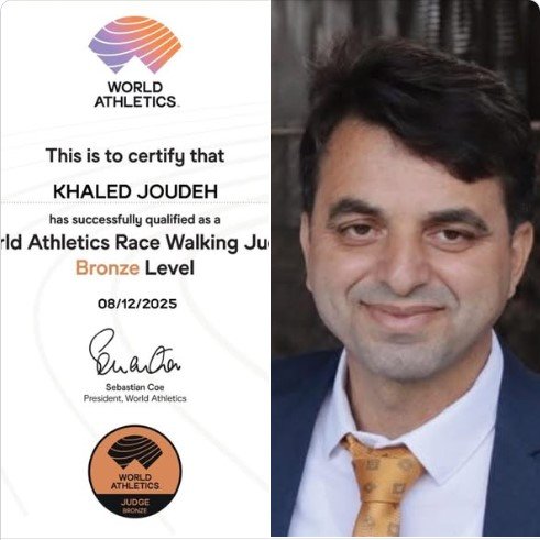 خالد جودة يجتاز اجتياز اختبار الاتحاد العالمي لألعاب القوى ويحصل على شهادة حكم سباق المشي .. الف مبروك