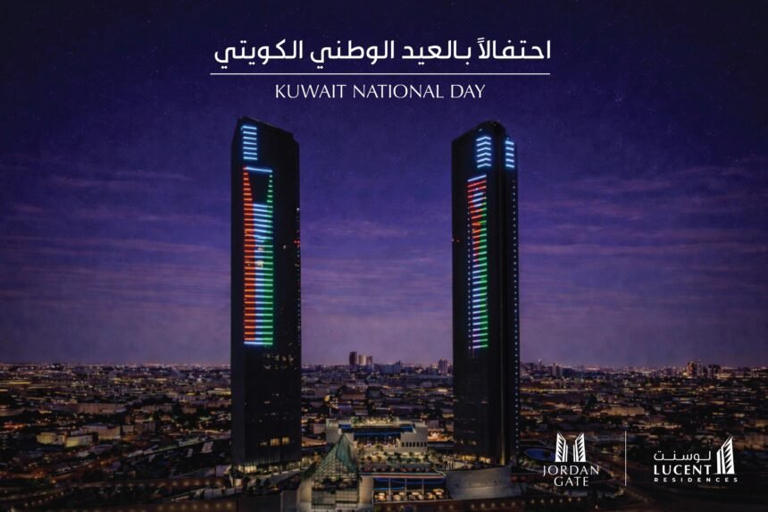 بوابة الأردن تضيء برج لوسنت السكني بعلمي الأردن والكويت احتفالًا بالعيد الوطني الكويتي