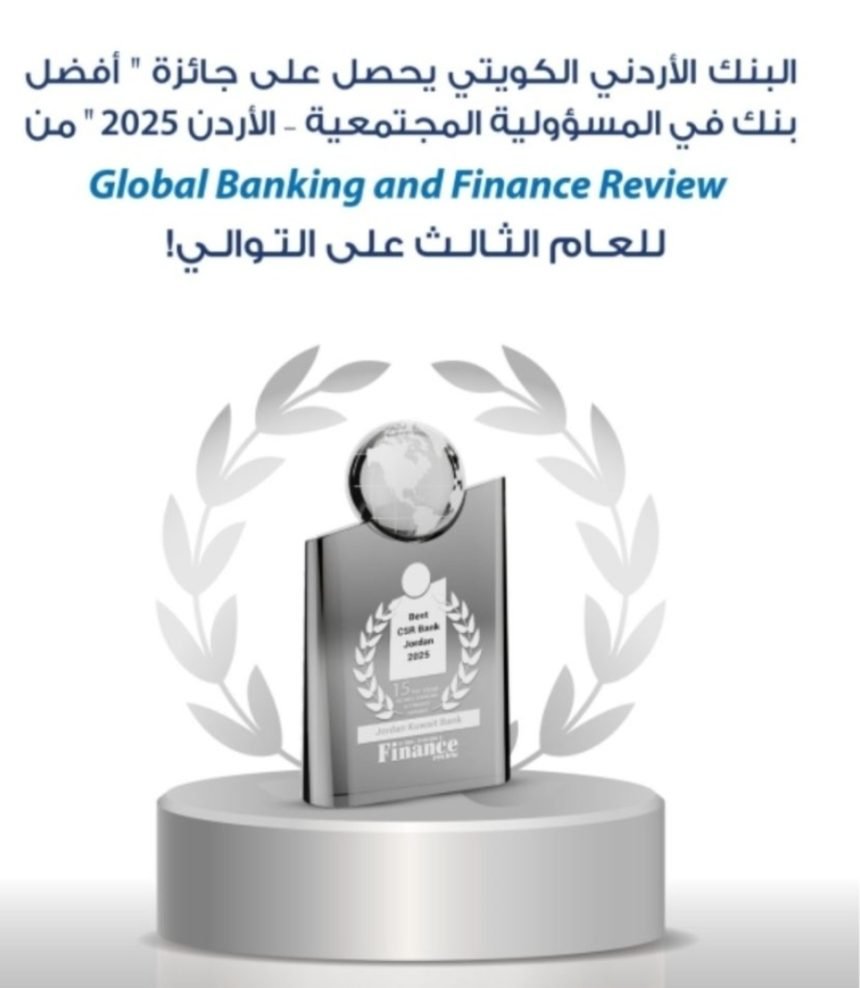 للعام الثالث على التوالي البنك الأردني الكويتي “أفضل بنك في الأردن في مجال المسؤولية المجتمعية” لعام2025