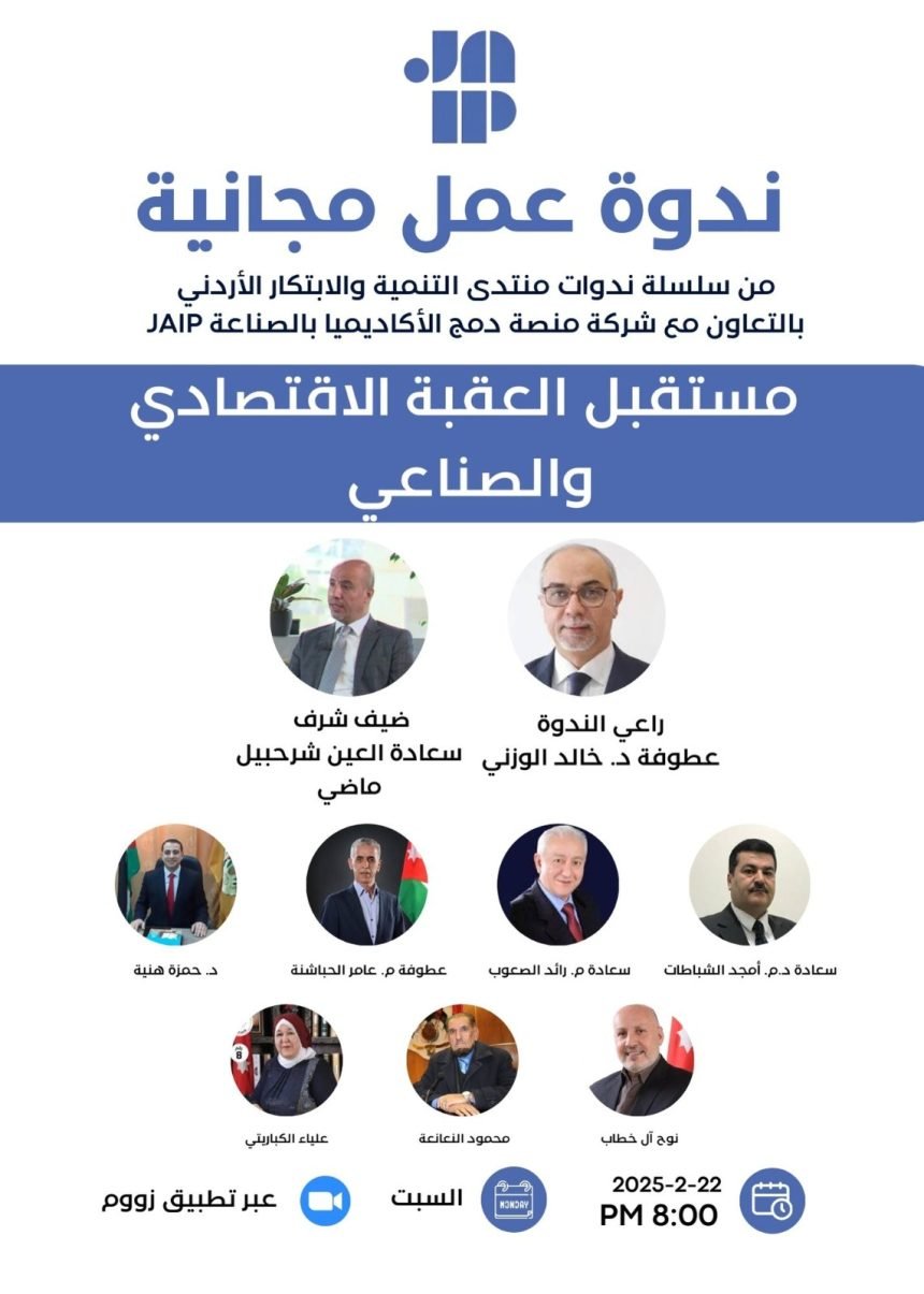 العقبة الخاصة؛ بين الواقع وسبل التفوق الاقتصادي، ندوة إفتراضية مساء السبت المقبل والدعوة عامة