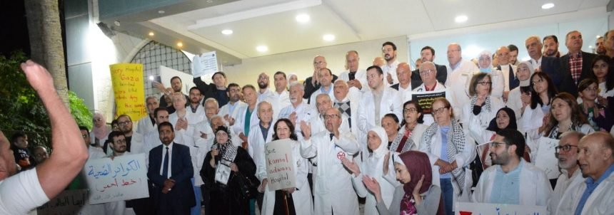 اطباء الاردن يعتصمون تضامنا مع غزة : “يا بتجيبوهم عنّا .. أو خذونا عندهم”.