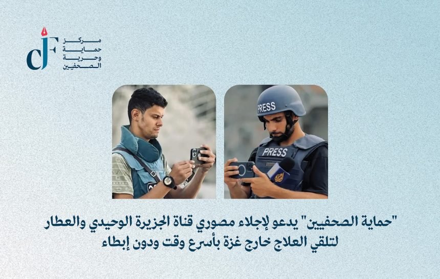“حماية الصحفيين” يدعو لإجلاء مصوري قناة الجزيرة الوحيدي والعطار لتلقي العلاج خارج غزة بأسرع وقت ودون إبطاء