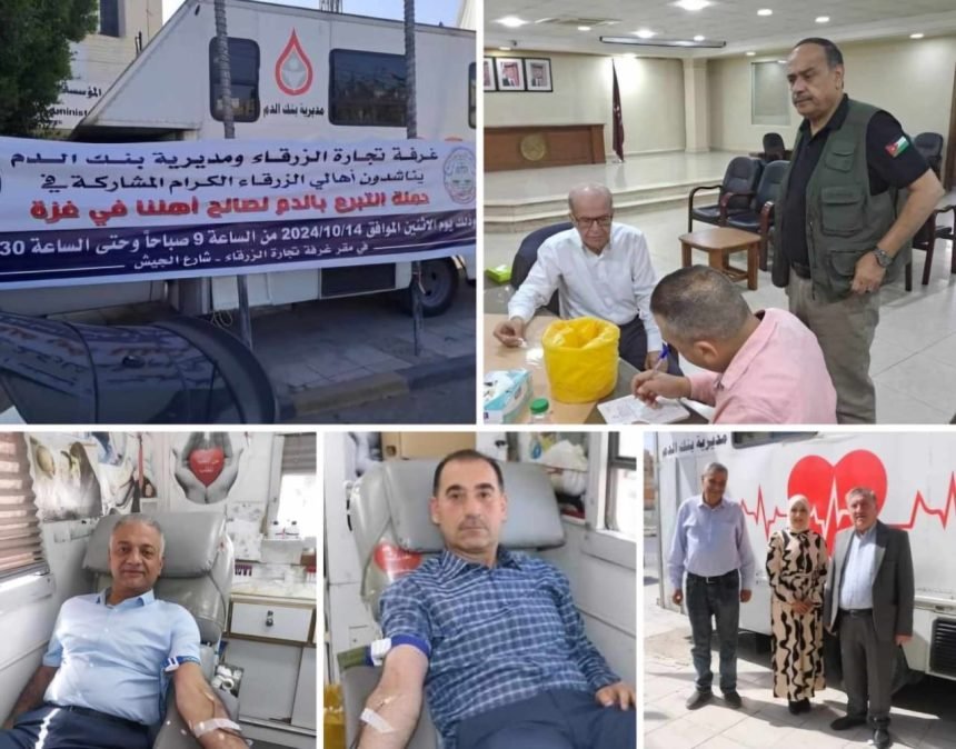 تجارة الزرقاء تنظم حملة تبرع بالدم لصالح الأهل في غزة