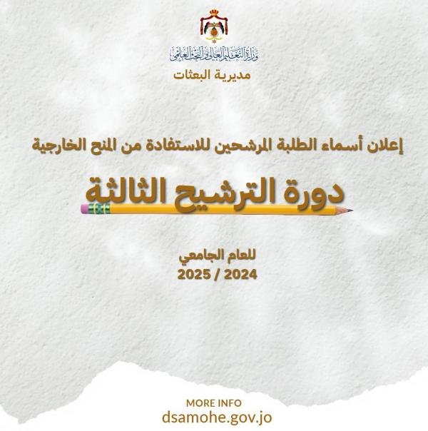 إعلان نتائج الدفعة الثالثة للحاصلين على منح جامعية خارجية (رابط)