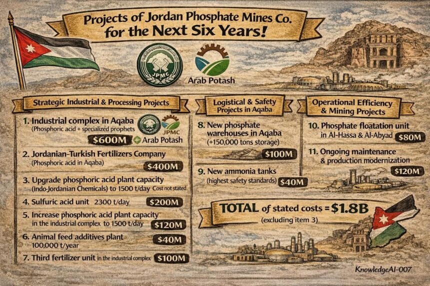 مشاريع شركة مناجم الفوسفات الأردنية للسنوات الست المقبلة ( العقبة ومحاور التوسّع الصناعي )