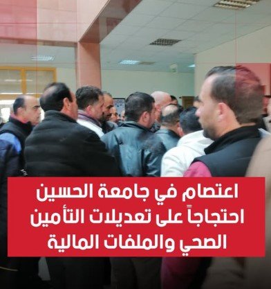 اعتصام في جامعة الحسين احتجاجاً على تعديلات التأمين الصحي والملفات المالية ..