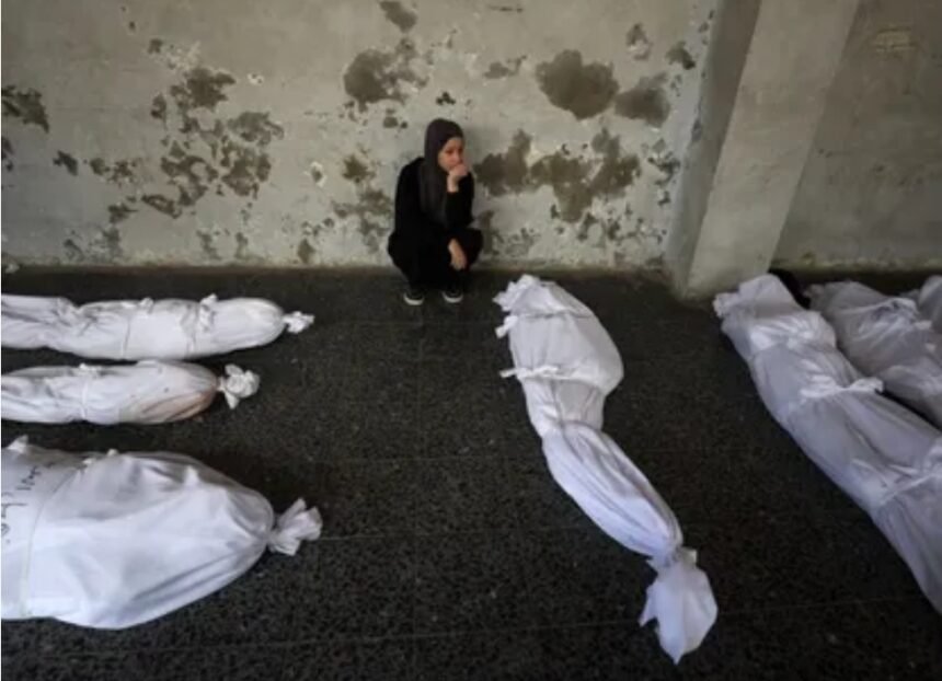 حماس تطالب ترمب والوسطاء بمتابعة تجاوزات إسرائيل بشأن اتفاق غزة فلسطينية تجلس وسط جثامين ضحايا غارات إسرائيلية على غزة في المستشفى الأهلي العربي المعروف بـ"المعمداني" في حي الزيتون. 12 أغسطس…